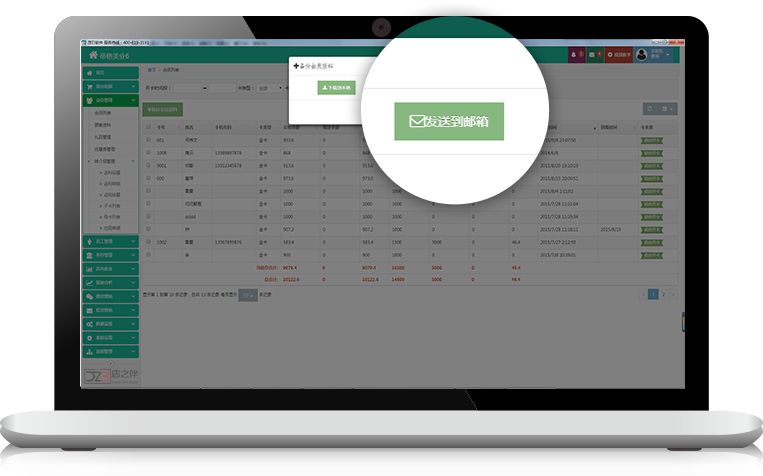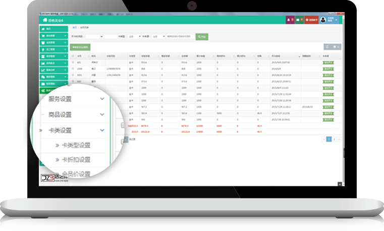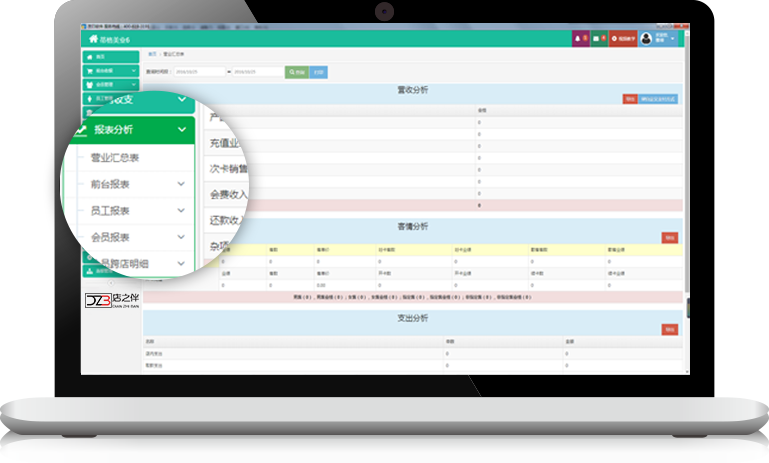 會員跨店充值消費,后臺統一查詢各店營業收入等報表。